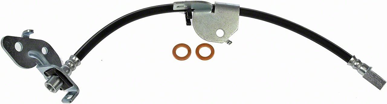 Vehicle and Position Specific Fit. Dorman Products is the right choice for a top-notch brake hydraulic hose without a hefty price tag. They have meticulously engineered this unit for strength, longevity, and chemical and thermal resistance. The hose banjo end fittings are copper washers to ensure a tight seal. It has proven to be highly safe by testing up to 4,000 PSIs. This part is also constructed to fit the front passenger side of an F-150 model precisely.