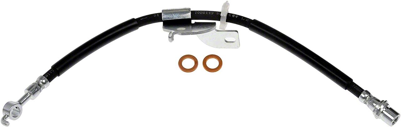 Long-Lasting. Because it is made of EPDM rubber and has treated steel fittings, you can be confident in its durability and lifespan. Furthermore, its stamped steel bracket design provides an accurate and reliable fit. This Front Brake Hydraulic Hose also comes in black, which will match the majority of your car's components.