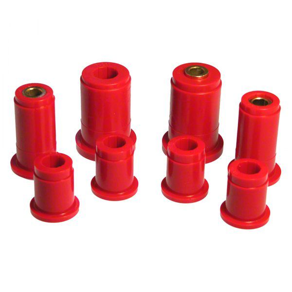 Robust Build and Long-Lasting Quality. Constructed from high-grade polyurethane, the Front Control Arm Bushing Kit is engineered for durability and resistance to wear and tear. The vibrant red color not only adds an aesthetic appeal but also signifies the quality and strength of the material. This durable construction ensures a prolonged lifespan of the control arms, offering an efficient solution to maintaining your vehicle's suspension system. With this kit, you can expect a long-lasting improvement in your vehicle's performance and handling.