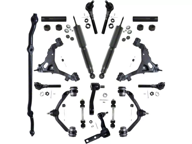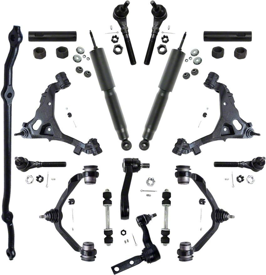 Application. These Front Control Arms with Center Link, Idler Arm, Pitman Arm, Shocks, Sway Bar Links, Tie Rods, and Tie Rod Adjusting Sleeve fit all 1997-2003 4WD Ford F-150 Models.