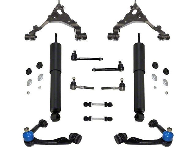 Complete Front Suspension Restoration. This comprehensive front suspension kit includes control arms, shocks, sway bar links, and tie rods to restore your 1997-2003 4WD F-150's steering stability, handling, and ride quality. Ideal for a full suspension overhaul, this kit ensures optimal performance on and off the road.
