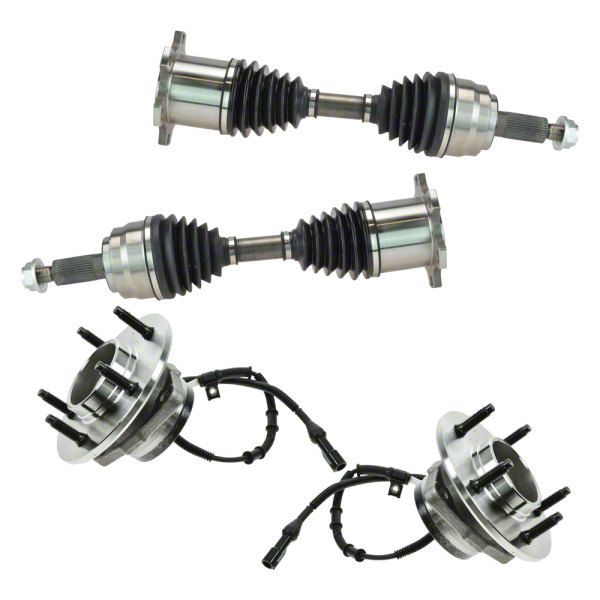 High-Quality Components. This drivetrain kit includes a pair of front CV axle assemblies, as well as a pair of front wheel bearing and hub assemblies. These components are made of premium-quality raw materials to guarantee their efficient performance. They have been manufactured with upgraded elastomer for a secure seal and extended service life, and they have been moly-greased, an application-designed grease shield that prevents premature wear.