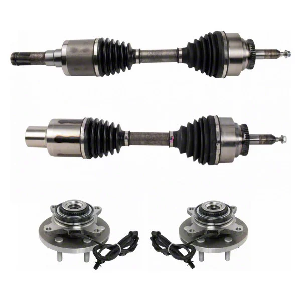 High-Quality Components. This drivetrain kit includes a pair of front CV axle assemblies, as well as a pair of front wheel bearing and hub assemblies. These components are made of premium-quality raw materials to guarantee their efficient performance. They have been manufactured with upgraded elastomer for a secure seal and extended service life, and they have been moly-greased, an application-designed grease shield that prevents premature wear.