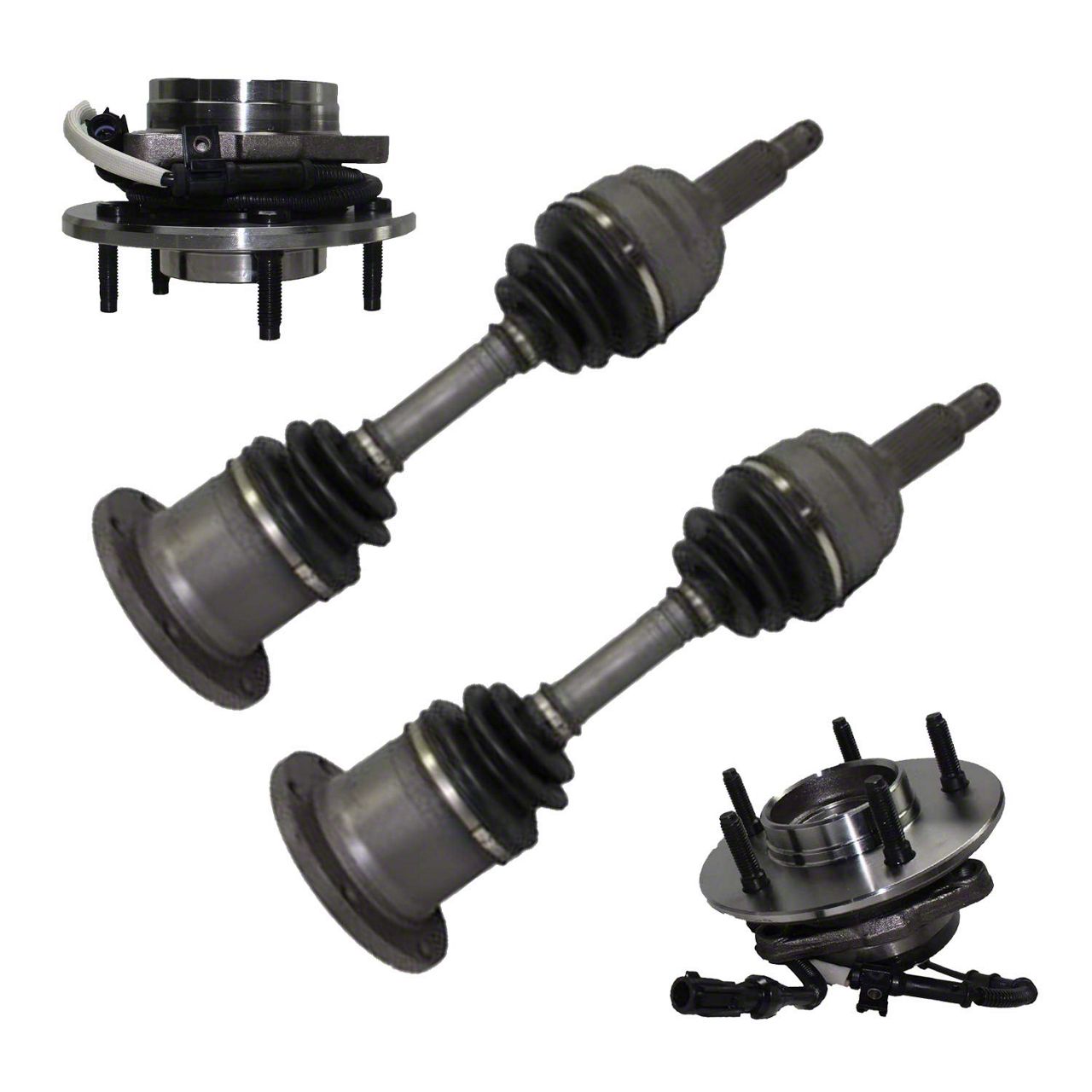 Comprehensive Front Axle Replacement. The Front CV Axles with Wheel Hub Assemblies provide a complete solution for replacing your F-150's front axle components. This kit includes pre-assembled CV axles and wheel hub assemblies, ensuring a direct fit and optimal performance for 4WD models.