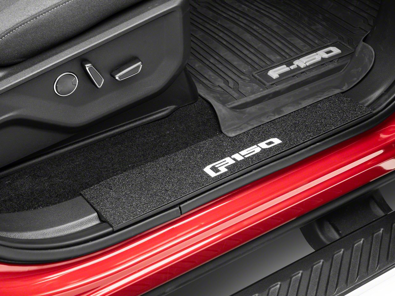 Door Sill Protectors. Add a more expensive, upscale appearance to your F-150's interior with a set of Front Door Sill Protectors that promote the F-150 logo. These Tuf-Liner Series Door Sill Protectors feature a similar look to spray in bed-liner and will protect your F-150's sills from scratches, dirt, rocks, and chipping paints. These Door Sill Protectors are an affordable and simple way to personalize your Ford F-150.