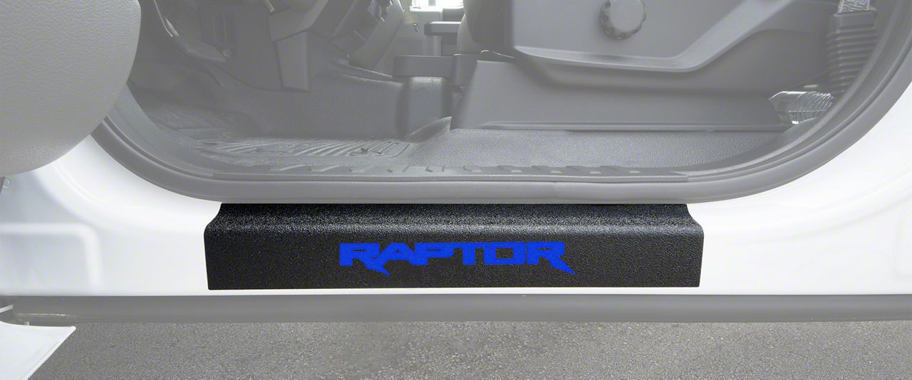 Application. These Front Door Sill Protection with Raptor Logo; Tuf-Liner Blue Logo are designed to fit 2015-2026 Ford F-150 Raptor models. Driver and passenger side included.