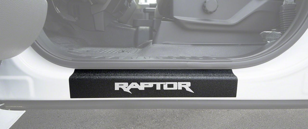 Door Sill Protectors. Add a more expensive, upscale appearance to your Raptor's interior with a set of Front Door Sill Protectors that promote the Raptor logo. These Tuf-Liner Series Door Sill Protectors feature a similar look to spray in bed-liner and will protect your F-150's sills from scratches, dirt, rocks, and chipping paints. These Door Sill Protectors are an affordable and simple way to personalize your Ford F-150 Raptor.