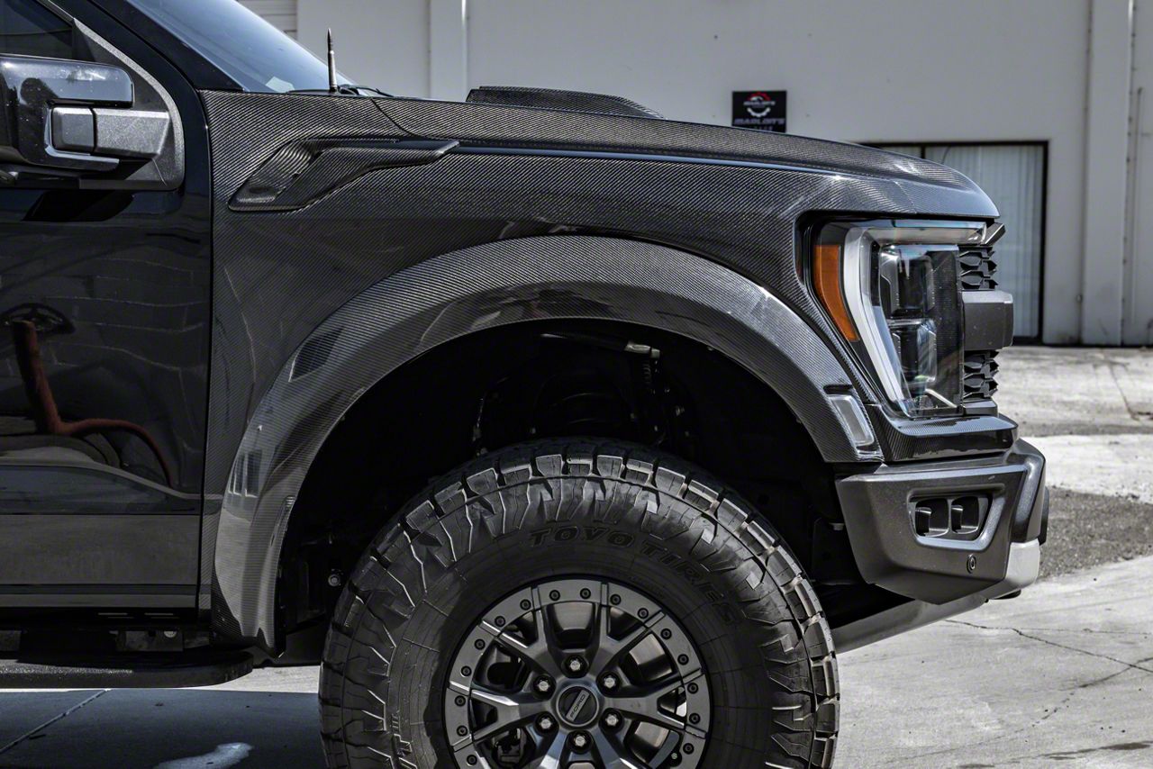 Application. Front Fenders and Vents; Carbon Fiber are compatible with 2021-2026 F-150 Raptor models.