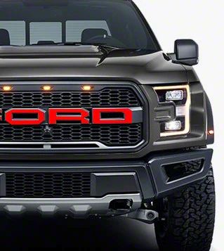 Application. The Front Grille Letter Overlays; Competition Orange fits 2017-2020 F-150 Raptor models.
