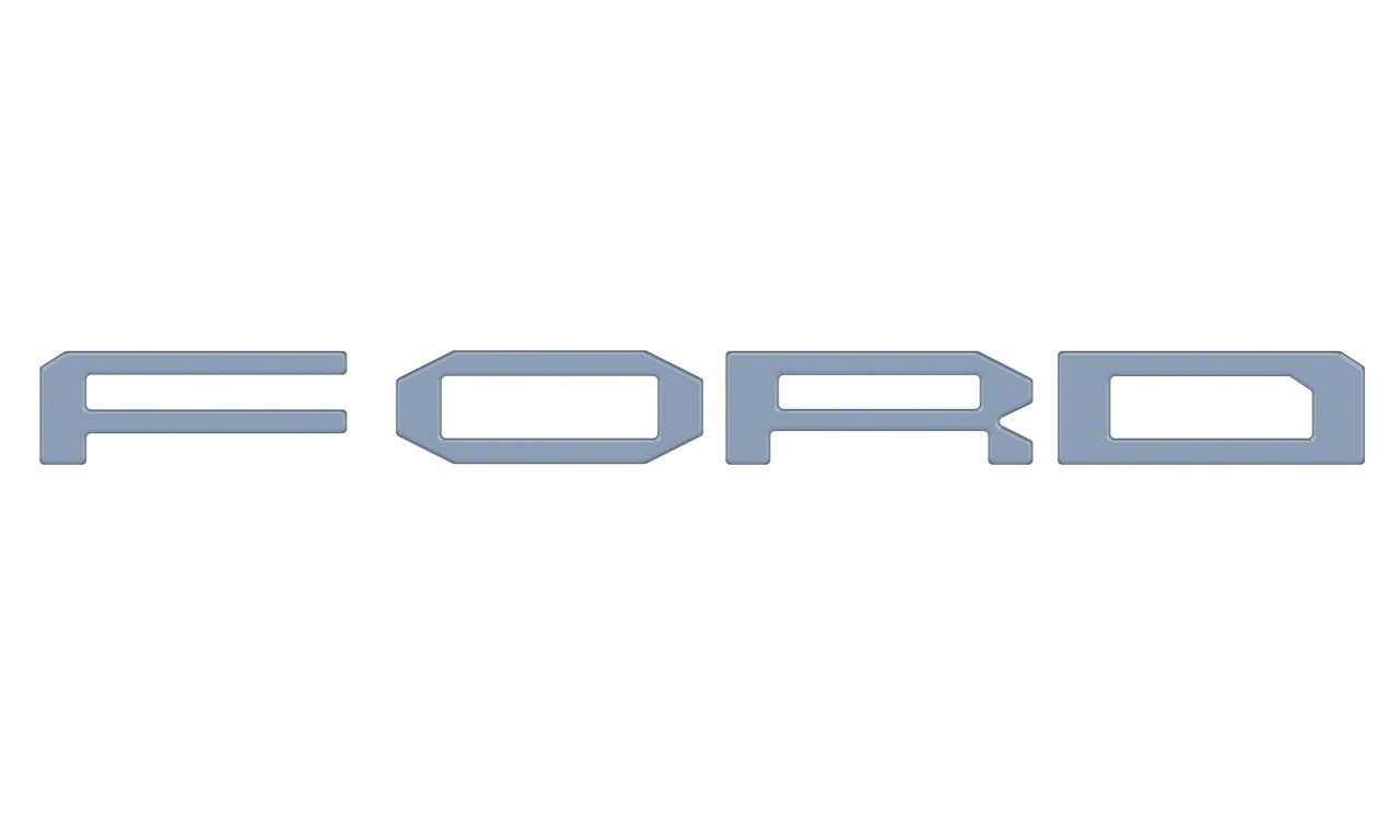 Durable, Weatherproof, and Stylish. Elevate the presence of your F-150 Raptor with the Front Grille Letters Overlays; Azure Gray. These overlays are designed to bring a custom, high-end look to your ride's front grille, blending seamlessly with its rugged aesthetics while introducing a touch of sophistication. Crafted from durable materials, these front grille letter overlays are built to withstand the elements, ensuring your ride's grille looks exceptional in all conditions.