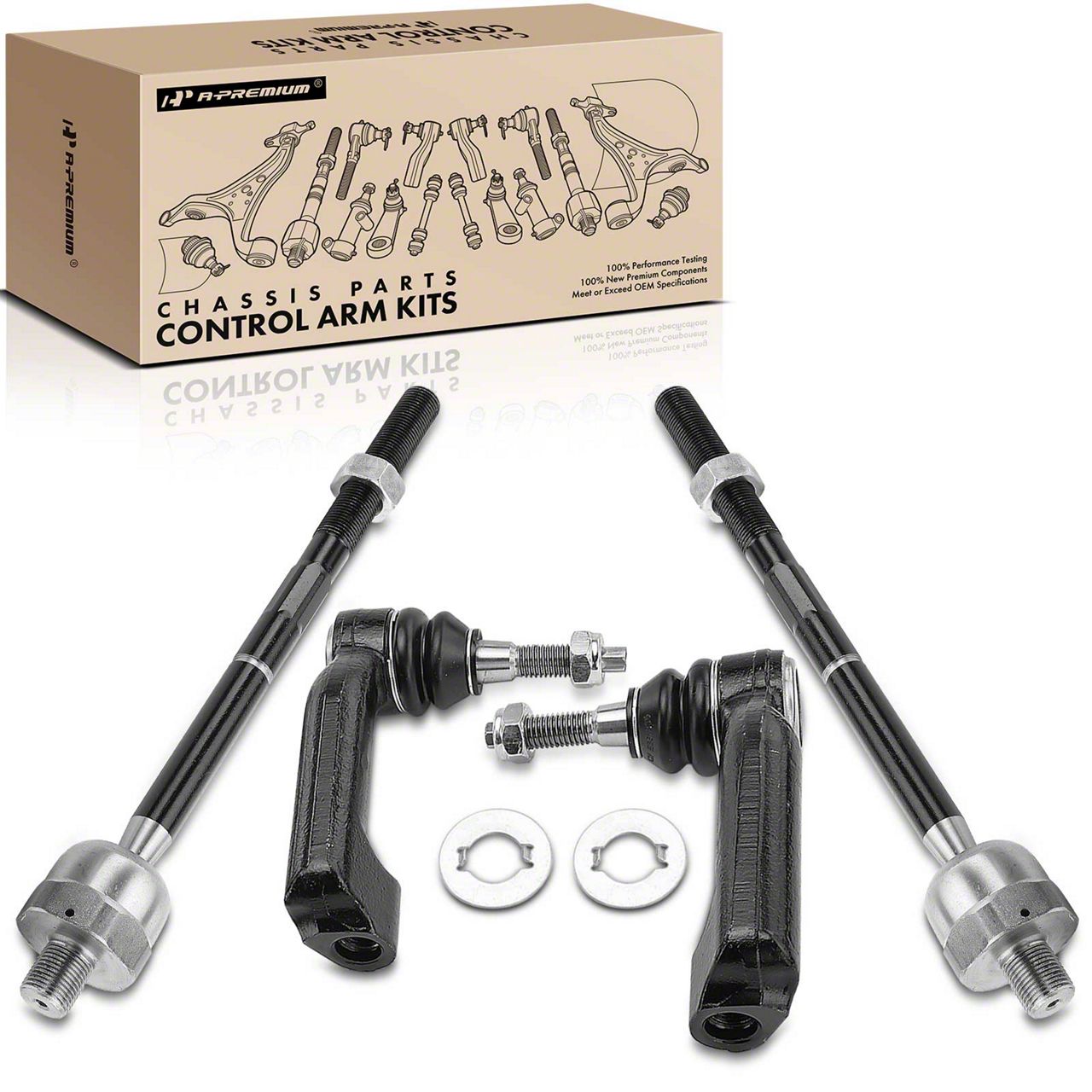 Installation. The Front Inner and Outer Steering Tie Rod End Kit installs easily as a direct replacement for factory components.