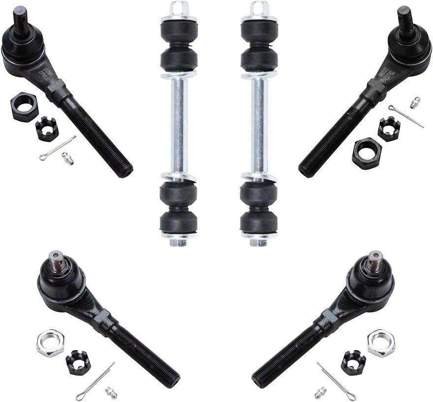 Complete Suspension Kit. The Front Inner and Outer Tie Rods with Sway Bar Links provide essential steering and suspension components for enhanced vehicle control and stability. These parts connect the steering system to the wheels and support the sway bar to reduce body roll during cornering, ensuring safer handling and ride comfort.