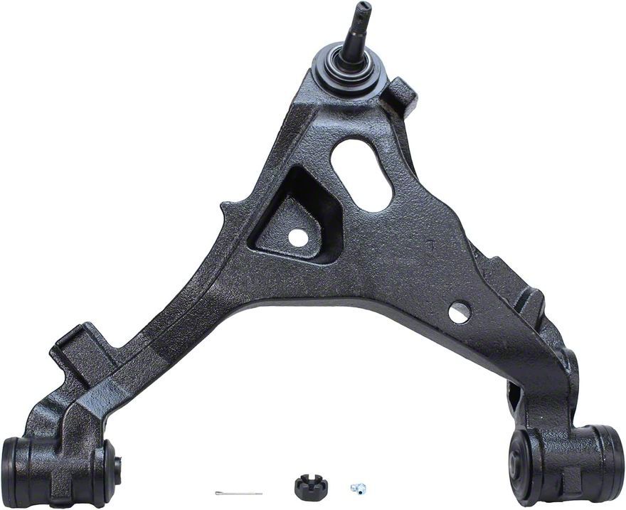 Premium Suspension Replacement. The Front Lower Control Arm on the Passenger Side is a critical part of the vehicle’s suspension system, ensuring stability and precise control of the front passenger side wheel assembly. It connects the suspension to the vehicle frame, allowing controlled wheel movement and improving handling performance. This control arm helps maintain proper suspension alignment, contributing to smooth and safe driving conditions.