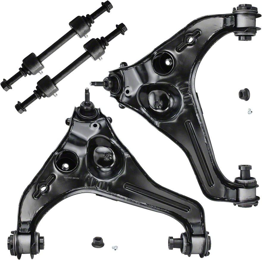 Durable Suspension Upgrade for Improved Handling. The Front Lower Control Arms with Sway Bar Links are designed to restore proper suspension geometry and handling performance in your F-150. Featuring pre-installed bushings and ball joints, this kit offers a hassle-free solution to worn-out suspension components, ensuring a smoother and more stable ride.