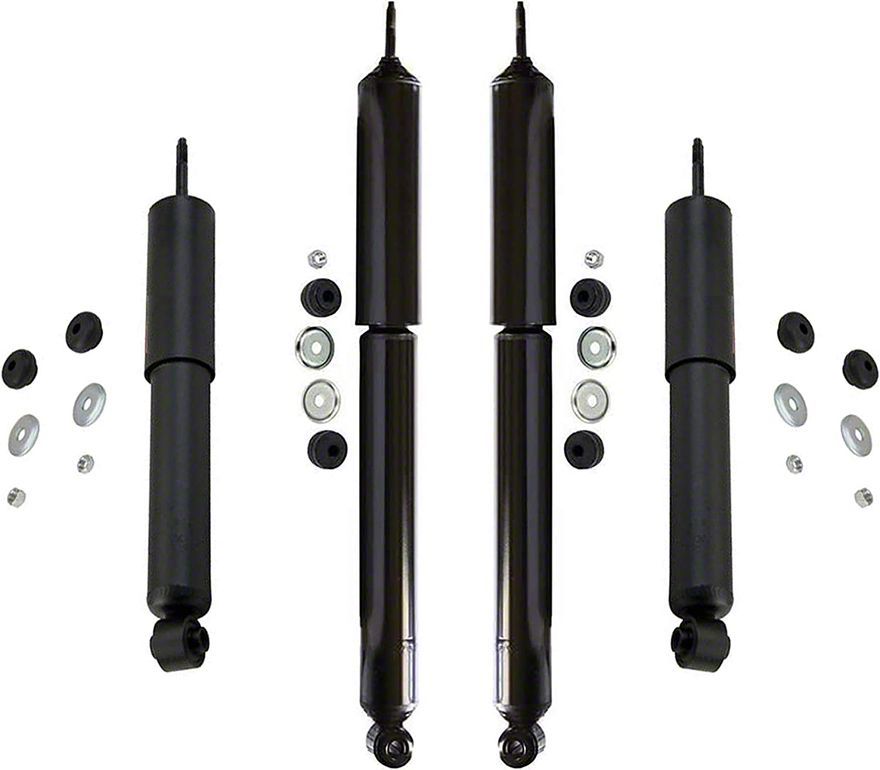 Reliable Suspension Upgrade. These Shocks are designed to deliver enhanced ride quality and dependable performance for your 1997–2003 4WD Ford F-150. Whether you're commuting, hauling, or venturing off-road, this complete set includes both front and rear shocks to help absorb impacts and maintain control in a variety of driving conditions. Built to restore or improve factory suspension characteristics, they ensure a smoother, more stable ride.