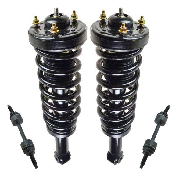 OEM-Quality Dampening. Get back on the road in your F-150 and ride smoothly through the street and dirt with this Front Strut and Spring Assemblies with Sway Bar Links. Expertly crafted to serve as a replacement component over your failing stock Struts, this assembly mounts directly over the OEM mounting locations, restoring balance and stability to your drive.