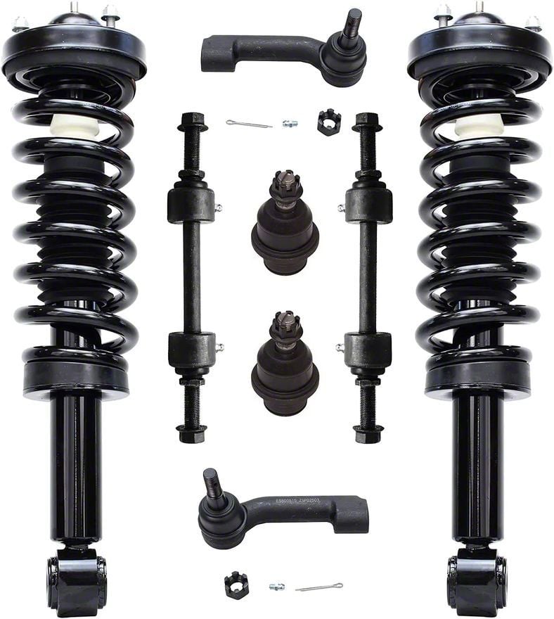 Comprehensive Suspension Solution. The Front Strut and Spring Assemblies provide a complete solution for restoring and enhancing the front suspension system of your 2009–2013 4WD Ford F-150. By replacing key components such as struts, ball joints, tie rod ends, and sway bar links, this kit ensures improved handling, stability, and ride comfort.