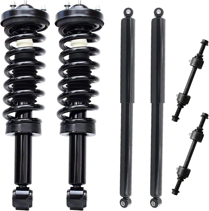 High-Quality Replacement Parts. The Front Strut and Spring Assemblies with Rear Shocks and Sway Bar Links are designed to restore the performance of your 4WD Ford F-150. Engineered to meet or exceed OEM specifications, this set ensures reliable handling and stability on the road. These assemblies are an ideal choice for maintaining your vehicle's ride quality and suspension integrity.