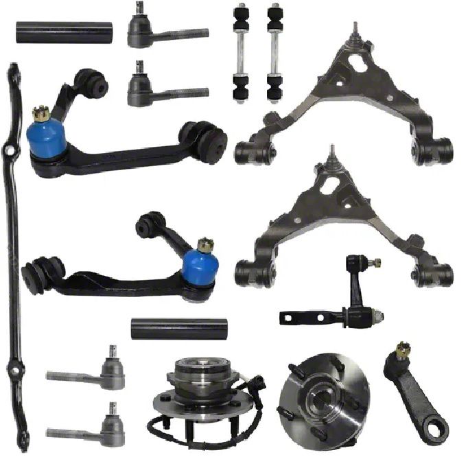 Application. The Front Upper Control Arms with Center Link, Idler Arm, Wheel Hub Assemblies, Tie Rods and Pitman Arm fits 2000-2003 4WD F-150 models.