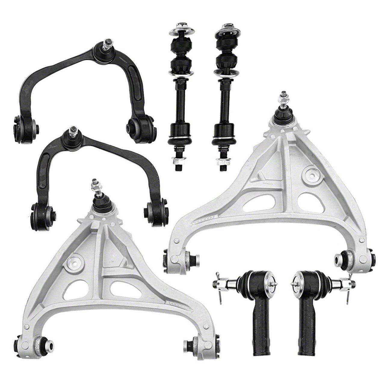 Durable and Convenient Design. Featuring upper and lower control arms with pre-installed ball joints, this kit simplifies installation while ensuring long-term durability. The included sway bar links and outer tie rod ends are constructed from high-strength materials to withstand demanding conditions and provide consistent performance.