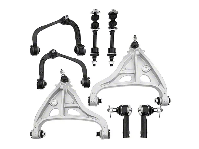 Comprehensive Suspension Restoration. The Front Upper and Lower Control Arm, Ball Joint, Sway Bar Link, and Outer Tie Rod End Kit provides everything needed to restore your F-150's suspension and steering performance. This comprehensive kit enhances stability, ride quality, and suspension geometry, making it an ideal solution for worn or damaged components.
