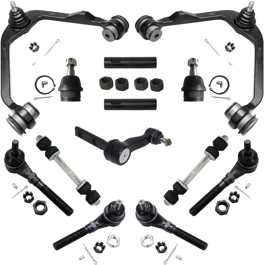 Comprehensive Suspension Replacement. The Upper Control Arms kit provides a complete solution for restoring your front suspension system. Designed with OE compatibility, this kit includes control arms, ball joints, tie rods, sway bar links, and an idler arm to ensure smooth handling and improved ride stability. This product fits 1997–2003 four-wheel drive Ford F-150 models, making it an excellent choice for maintaining or upgrading suspension reliability.