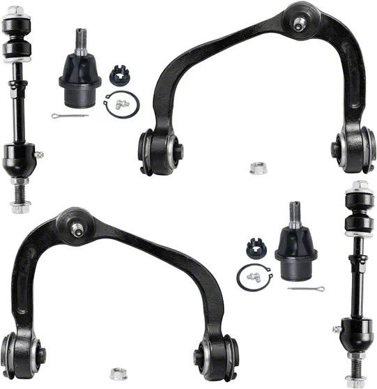 Performance. Better suspension geometry, which is essential for preserving tire contact with the road surface, is provided with the Front Upper Control Arms with Ball Joints and Sway Bar Links. Better handling is the result of this enhancement, especially during turns and maneuvers. It reduces the likelihood of the tires losing traction and enhances overall driving stability.