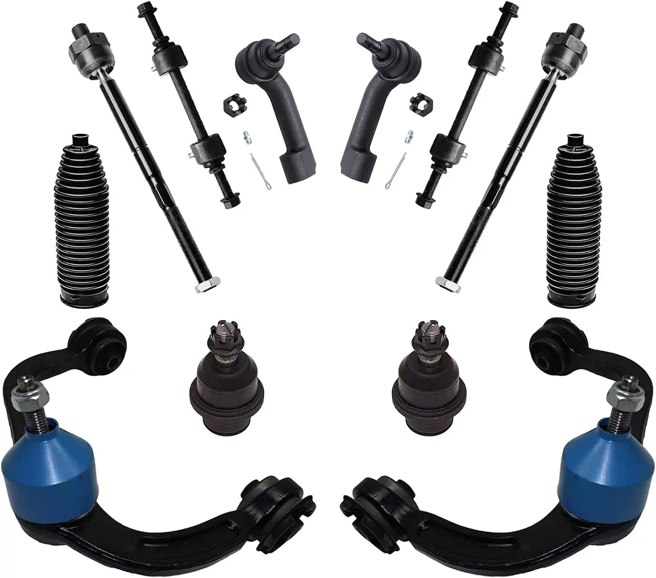 Comprehensive Front Suspension Solution. The Upper Control Arms Kit is an all-in-one upgrade for your front suspension system, designed specifically for 2009-2014 4WD Ford F-150 models (excluding Raptor). This kit includes two upper control arms, two ball joints, two sway bar links, and two tie rods, ensuring superior handling and a smooth, controlled ride.