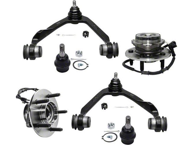 Enhanced Front Suspension Upgrade. The Front Upper Control Arms with Ball Joints and Wheel Hub Assemblies, part number 80092-6D, are designed to restore and enhance the performance of your 2000-2003 4WD Ford F-150. These parts improve steering response, enhance ride quality, and ensure reliable handling. Perfect for those seeking a durable, direct replacement solution for worn-out suspension and hub components.