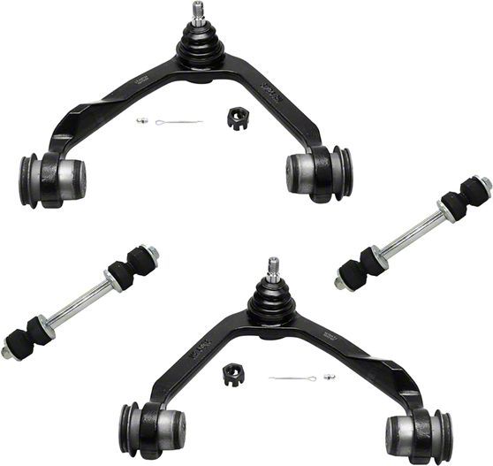 Complete Suspension Upgrade. The Front Upper Control Arms with Sway Bar Links are essential for improving steering precision and handling stability. This kit replaces worn or damaged parts, ensuring smooth and responsive suspension function critical for safety and performance.