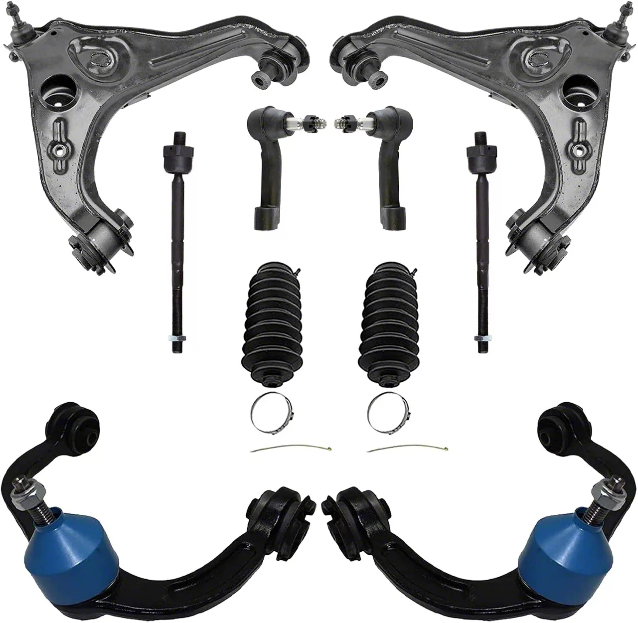 High-Performance Suspension Control. This Upper and Lower Control Arm Kit with Tie Rods provides enhanced stability and control for the front suspension of compatible Ford F-150 models. Designed to offer durability and superior handling, this kit is ideal for maintaining or upgrading the performance of your vehicle’s suspension system.