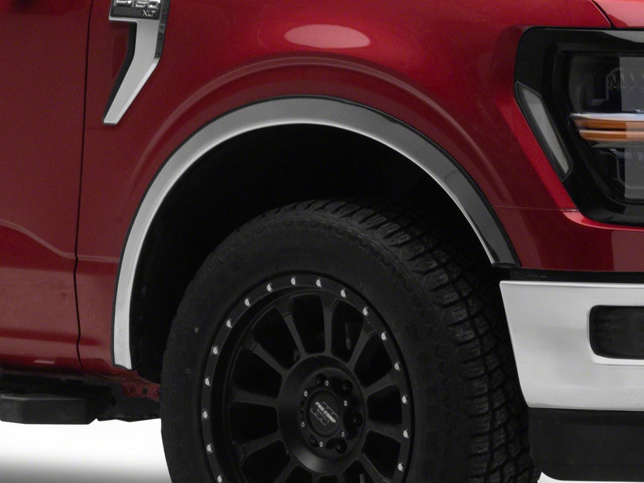 Application. This Fender Trim Set fits 2021–2026 Ford F-150 models, excluding Raptor models. Combining polished chrome style with rugged stainless steel construction, it enhances exterior appeal while adding a layer of protection to the wheel arches.
