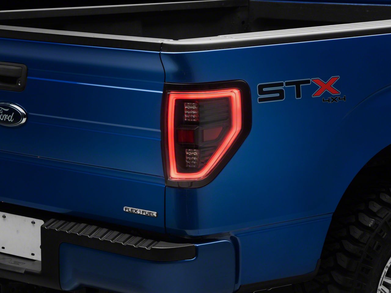 Application. The Full LED Tail Lights; Black Housing; Clear Lens fits all 2009-2014 Ford F-150 Styleside models.