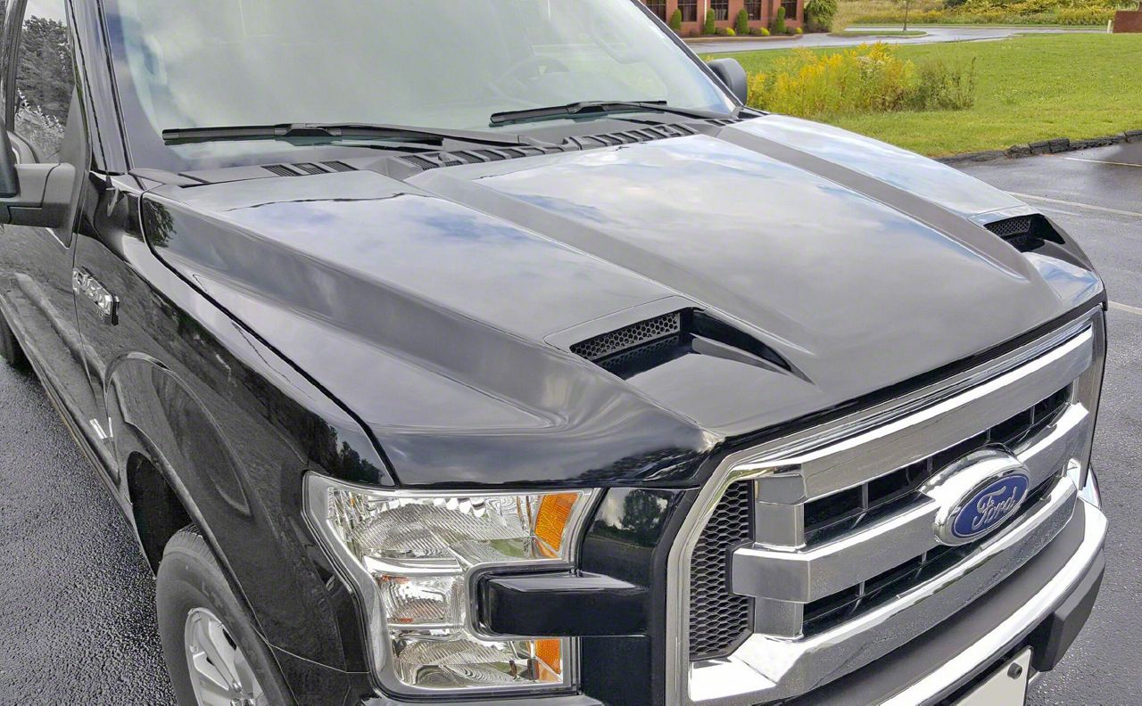 Stylish with Improved Airflow. Made for the Ford F-150, this Functional Ram Air Hood comes in a matte black finish and is crafted from fiberglass using resin transfer molding technology. This hood is a direct replacement for your stock hood and give better airflow to your ride’s engine bay.