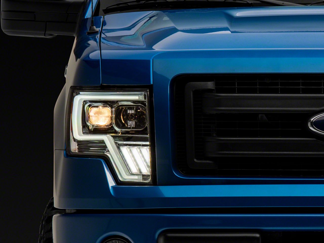Application. This pair of G4 Light Bar Switchback Projector Headlights is designed to fit all the 2009-2014 Ford F-150 models with Factory Halogen Headlights.