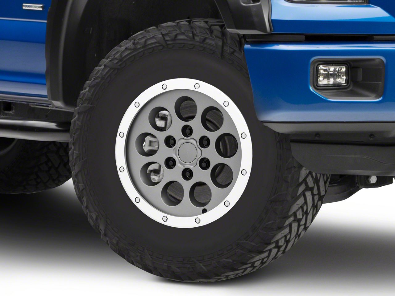 Application. This American Trucks Wheels Gen1 Raptor Beadlock Style Charcoal 6-Lug Wheel; 17x8.5; 34mm Offset with a backspace of 6.089 Inch, 154.7mm; and bolt pattern of 6 x 135mm (6 x 5.31-Inch), contributes to alignment, driving stability, and ensures a perfect fit with the vehicle model. Designed to fit the 2015-2020 F-150. Sold individually.