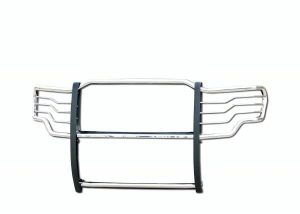Utility and Style. Offering flexible lighting options and a classy polished look this Grille Guard' Stainless Steel is a wonderful addition to your F-150. Perfectly crafted for support for more auxiliary lights, it comes with pre-drilled holes and a stainless steel structure for sufficient support and flexible customizability option.