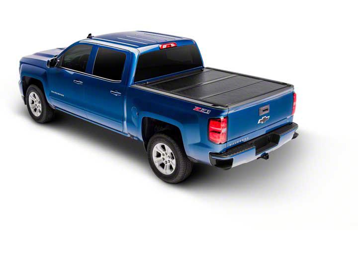 Durable Construction for Long-Lasting Performance. Crafted with durability in mind, the Hard Top Mount Tri-Fold Tonneau Cover features a robust hard top construction that withstands the elements. The cover mounts securely to your truck bed, providing a reliable shield against weather elements. The UV-resistant and waterproof material ensures longevity, while the clamp-on design allows for a straightforward installation process.