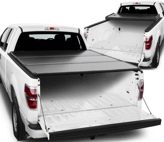 Dependable Cargo Security. Protect your cargo inside your Ford F-150’s truck bed. Shield them from possible theft or harsh weather by using this Hard Tri-Fold Style Tonneau Cover in Black. This bed cover is built specifically to keep your truck bed from snow, rainwater, debris, leaves, and dirt. Furthermore, the sturdy, flush-mount locks reinforce this protection by securing both the tailgate and the cover.