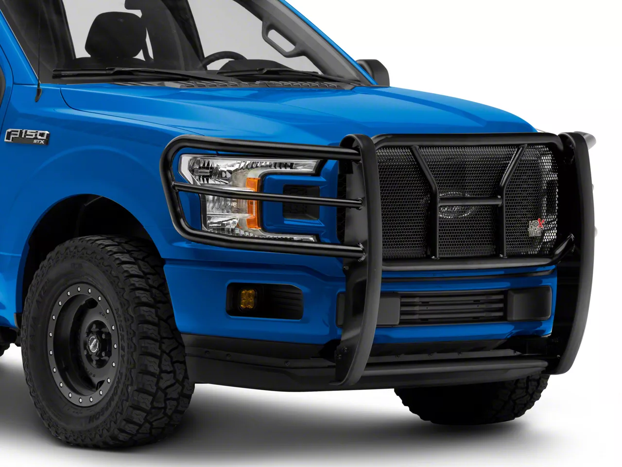 Ultimate Off-Road Protection. Give your Ford F-150 an aggressive exterior modification by protecting your front-end with this HDX Black Grille Guard. This grille guard acts as a bold fence engineered through CAD technology for a vehicle-specific fit that stylishly outlines your truck’s body contours. Additionally, its full-width assembly with a full-grille guard keeps your truck well-protected from various obstacles as your F-150 treads through wooded trails and rocky terrains.