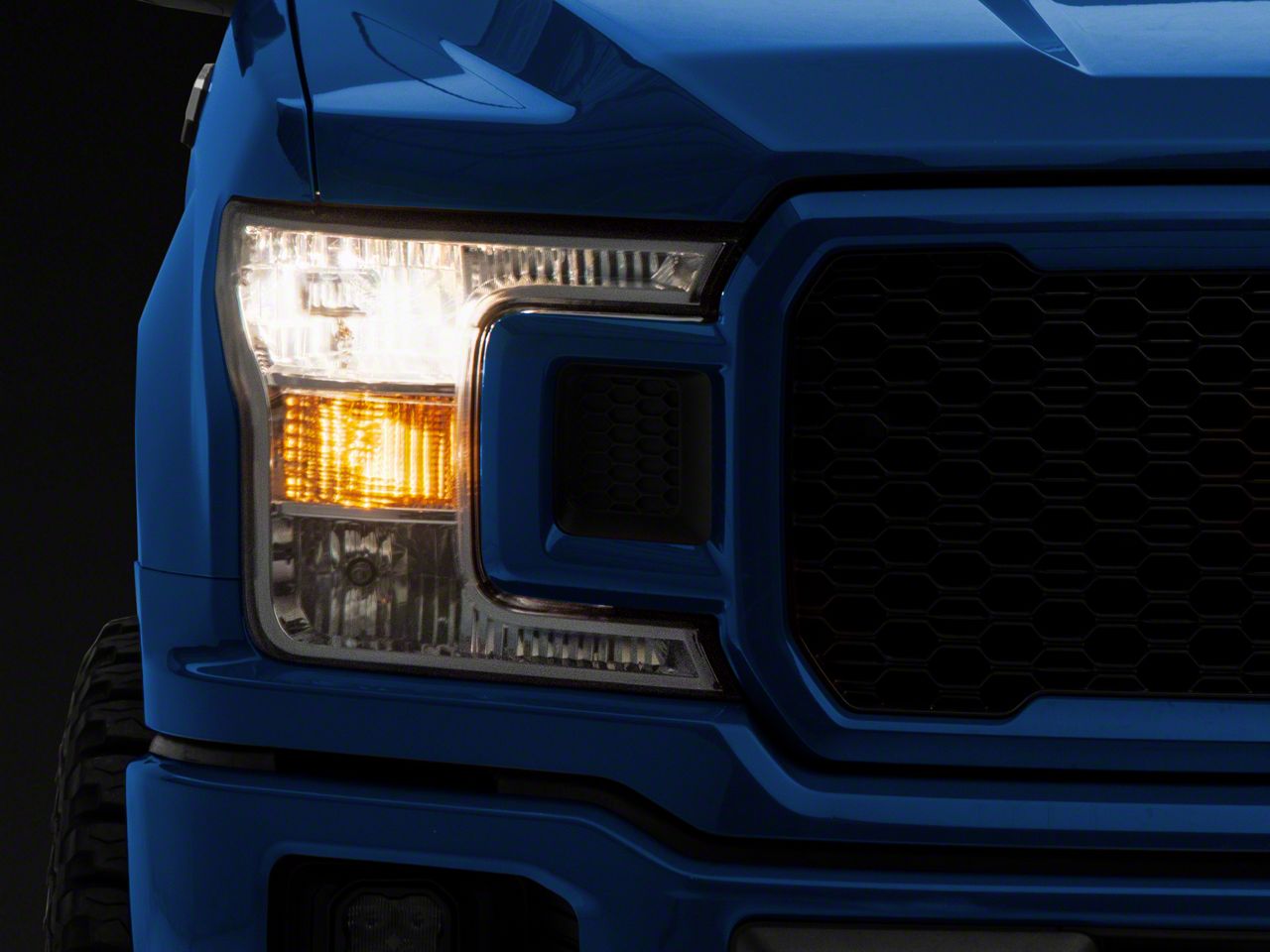 Headlights with Clear Corners; Chrome Housing; Clear Lens (18-20 F-150 w/ Factory Halogen Headlights)Find parts that fit my vehicle