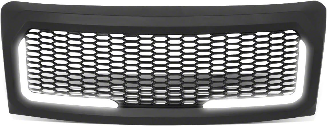 Stylish Upgrade with Enhanced Visibility. The Honeycomb Mesh LED DRL Upper Replacement Grille (Matte Black) is designed to transform the front end of your Ford F-150 (excluding Raptor models) with a bold, aggressive look. This grille not only enhances the vehicle's appearance but also improves visibility with its integrated LED daytime running lights, ensuring your truck stands out on the road.