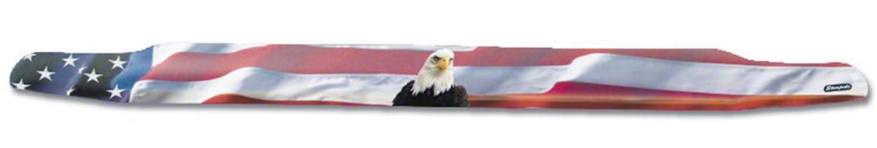 Aerodynamic and Robust Protection. Embrace patriotic flair while safeguarding the front end of your F-150 with the Vigilante Premium Hood Protector; American Flag with Eagle. Made from high-quality, durable acrylic material, this hood protector is designed to stand up to the rigors of the road. It effectively shields your hood and windshield from flying debris, bugs, and rocks, keeping your paint job and glass intact.