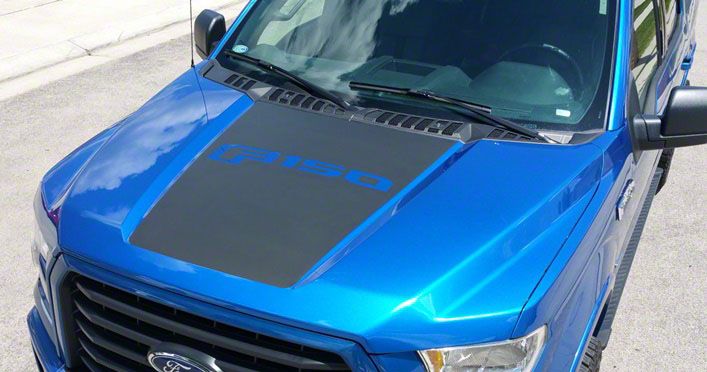 Design. Enhancing the appearance of your vehicle is one of the major benefits of installing a Hood Stripe with F-150 Logo; Matte Black. Your vehicle will stand out on the road with the matte black finish, which gives it a sleek and contemporary appearance. The F-150 emblem on the stripe displays your loyalty to the brand and provides a touch of personalization.