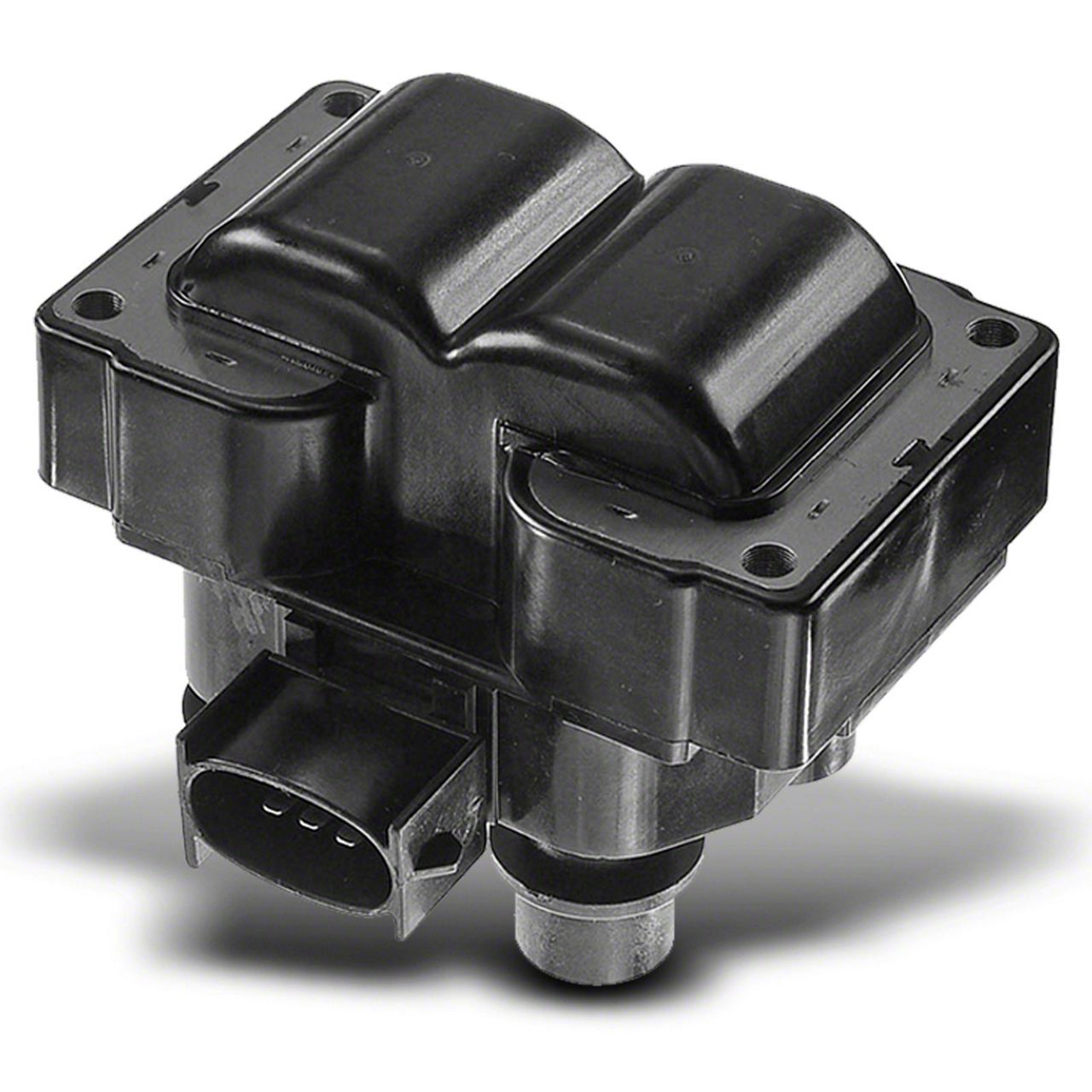 Construction and Appearance. This ignition coil features robust materials designed for longevity and durability, finished in a sleek black color with an oval connector shape. Its three-blade terminal design allows for secure electrical connections, while the bolt-on attachment method simplifies mounting.