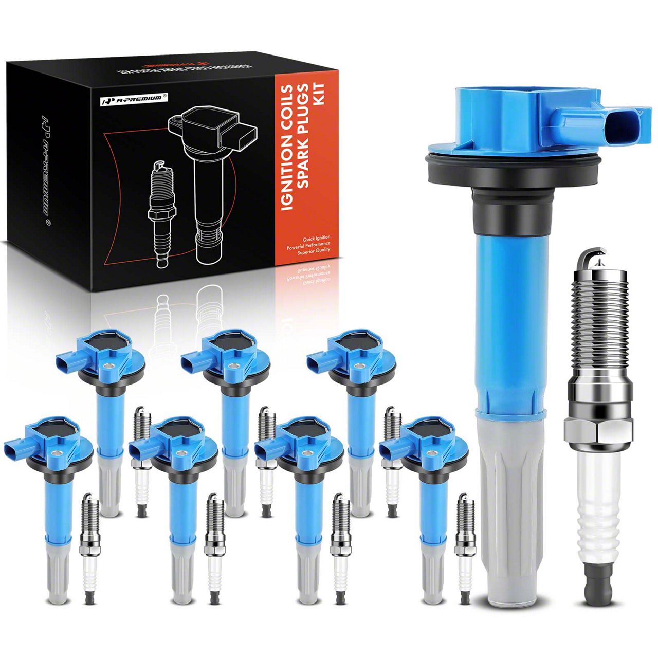 Application. This Ignition Coil Set with Iridium Spark Plugs; Blue fits 2011–early 2016 5.0L Ford F-150 models.