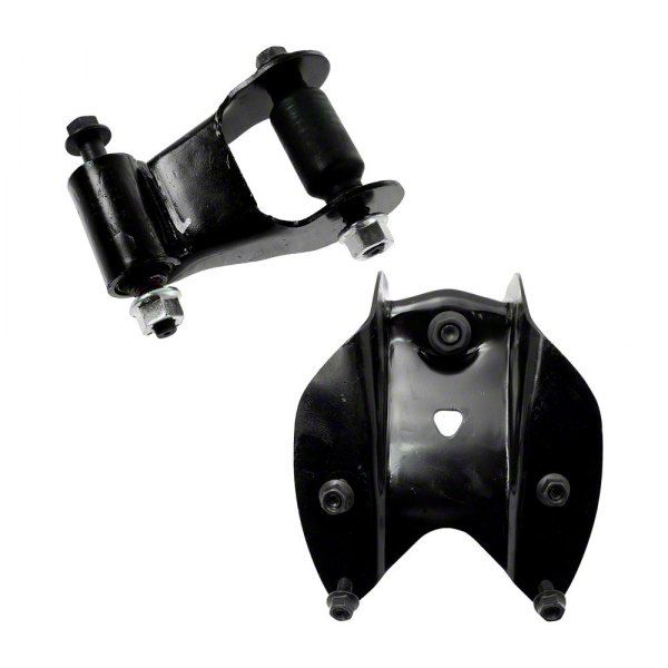 Durable Suspension Repair. The Leaf Spring Shackle and Bracket Repair Kit provides a reliable solution to restore the rear leaf spring mounting points on your vehicle. It replaces broken or worn shackles and brackets, helping maintain proper suspension alignment and ride quality. This kit is essential for maintaining vehicle safety and handling performance.