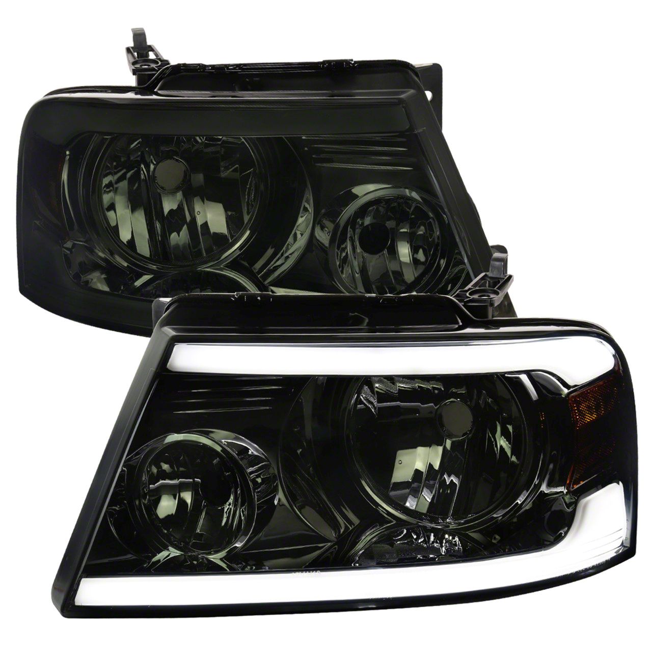 Factory Style LED Headlights. The LED Bar Factory Style Headlights with chrome housing and smoked lens provide a modern lighting upgrade while maintaining a factory appearance. These headlights improve visibility and style for your vehicle, offering enhanced road illumination with integrated fiber optic LED strips.