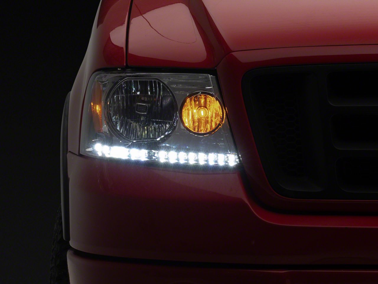 Application. These LED DRL Headlights with Amber Corners fit 2004-2008 F-150 models.