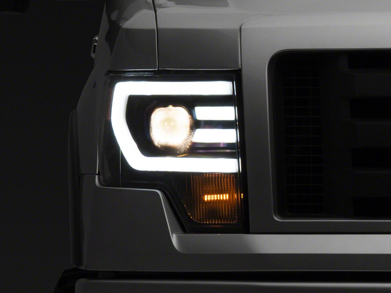 Application. These Black LED DRL Projector Headlights with Amber Corners are intended for use on 2009-2014 Ford F-150 models without Factory HID Headlights.